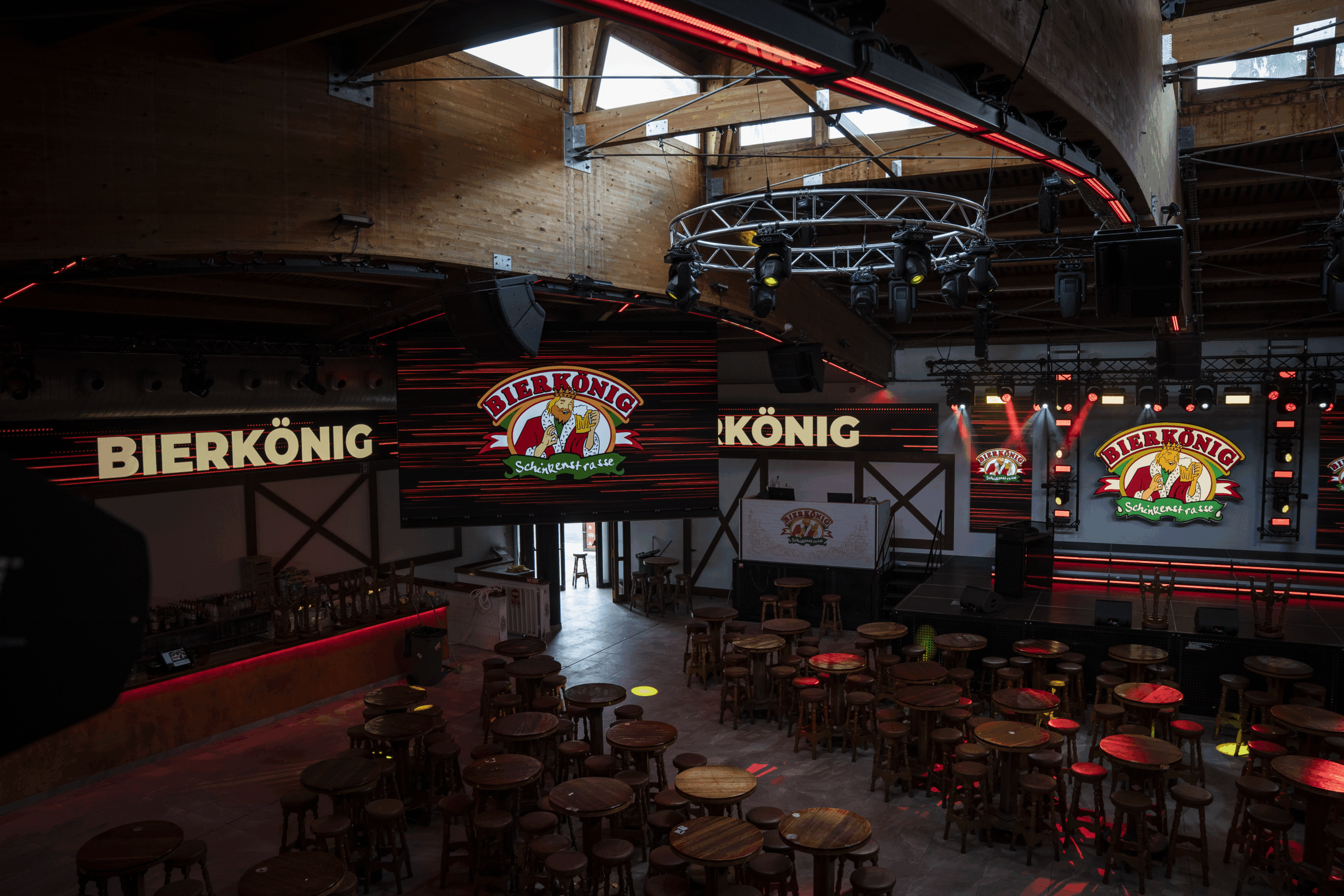 Mit Platz für mehrere Tausend Personen und drei Bereichen ist der Bierkönig ein Veranstaltungsort mit besonderen Anforderungen. Unsere Planer setzten daher auf robuste, modular erweiterbare Lösungen, die auch bei hoher Auslastung stabil bleiben.